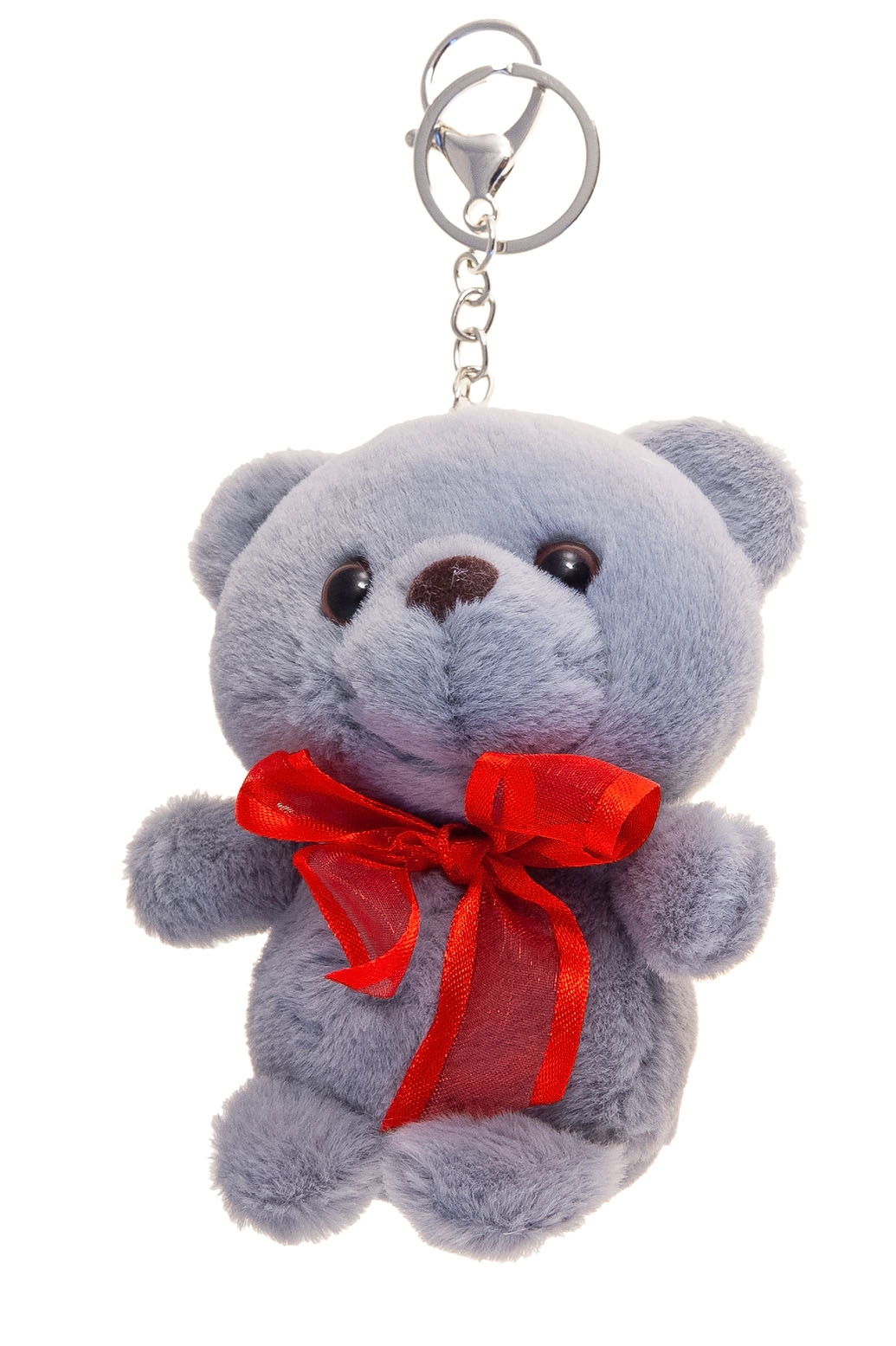 Uroczy brelok w kształcie misia w kolorze szarym.Brelok idealnie nada się na prezent, który ucieszy każde dziecko.