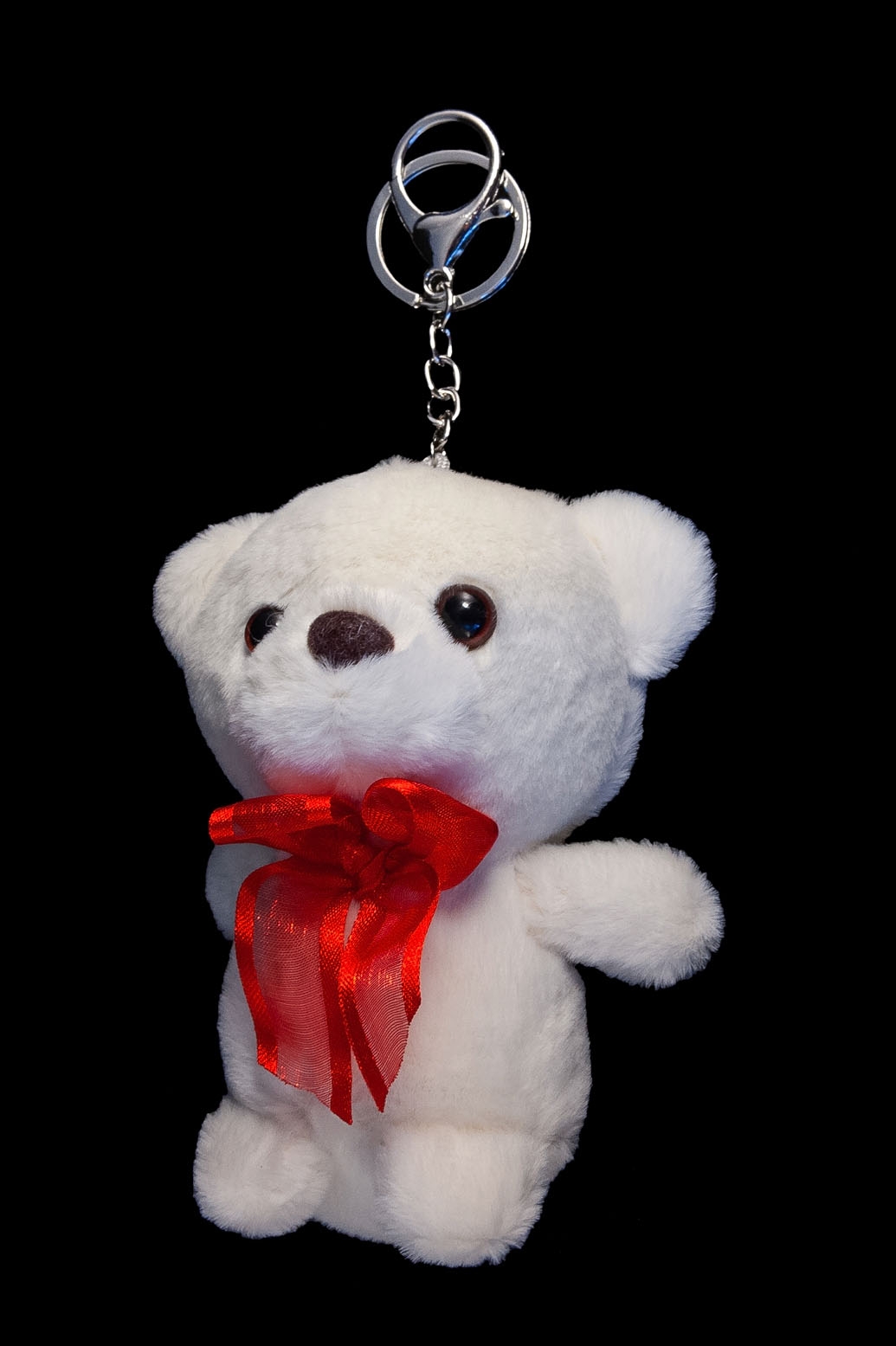 Uroczy brelok w kształcie misia w kolorze białym.
