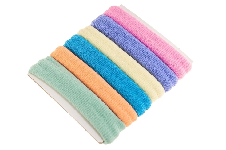 Duże gumki do włosów, są wytrzymałe i dobrze trzymają włosy.Zestaw składa się z sześciu kolorów: różowy, fioletowy, żółty, niebieski, pomarańczowy i zielony.