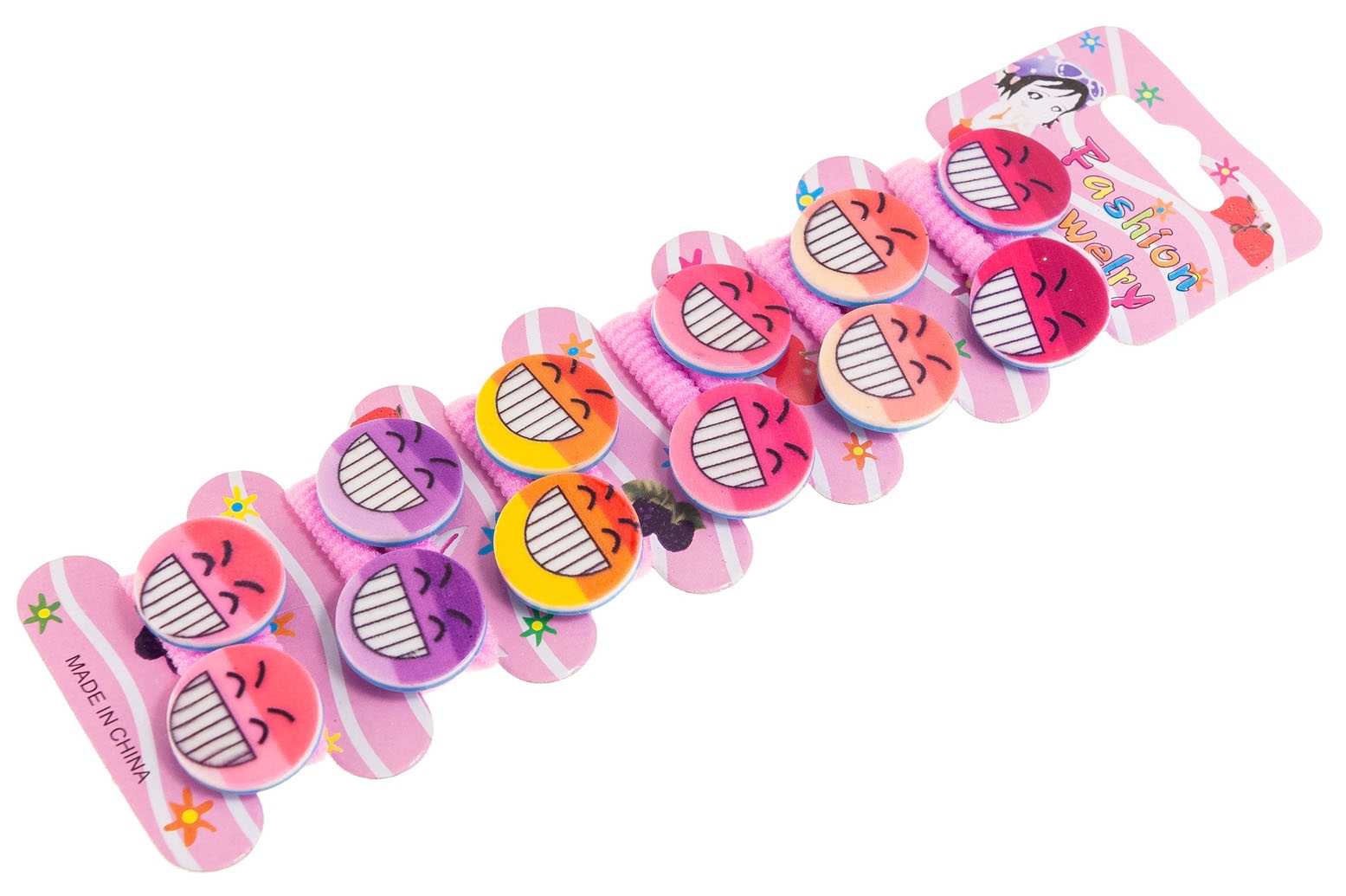 Klasyczne gumki do włosów z uroczą ozdobą w kształcie buźki.Zestaw składa się z sześciu wzorów.