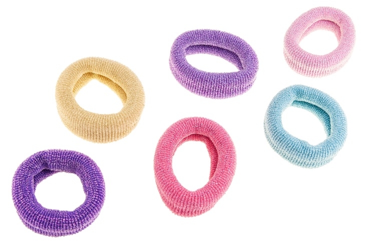 Klasyczne gumki do włosów, są wytrzymałe i dobrze trzymają włosy. Gumki ozdobione błyszczącą nitką.