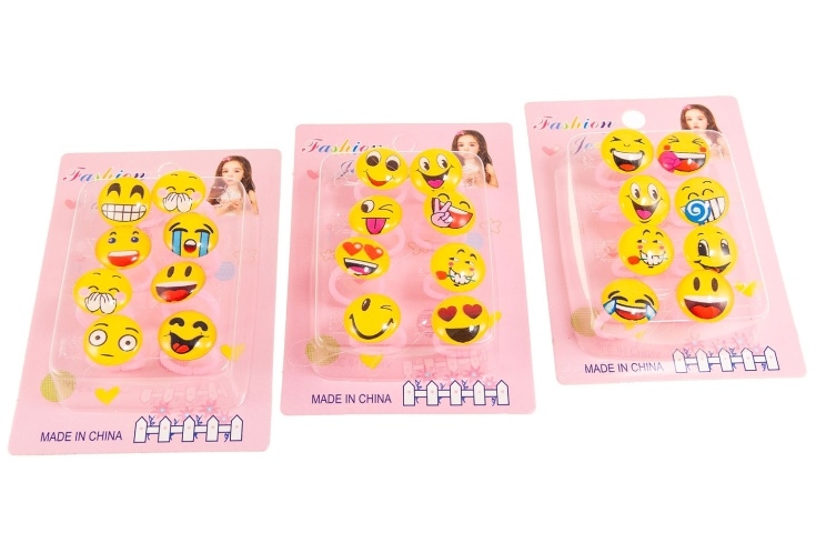 Dziecięce pierścionki w kolorze różowym z uroczymi ozdobami.