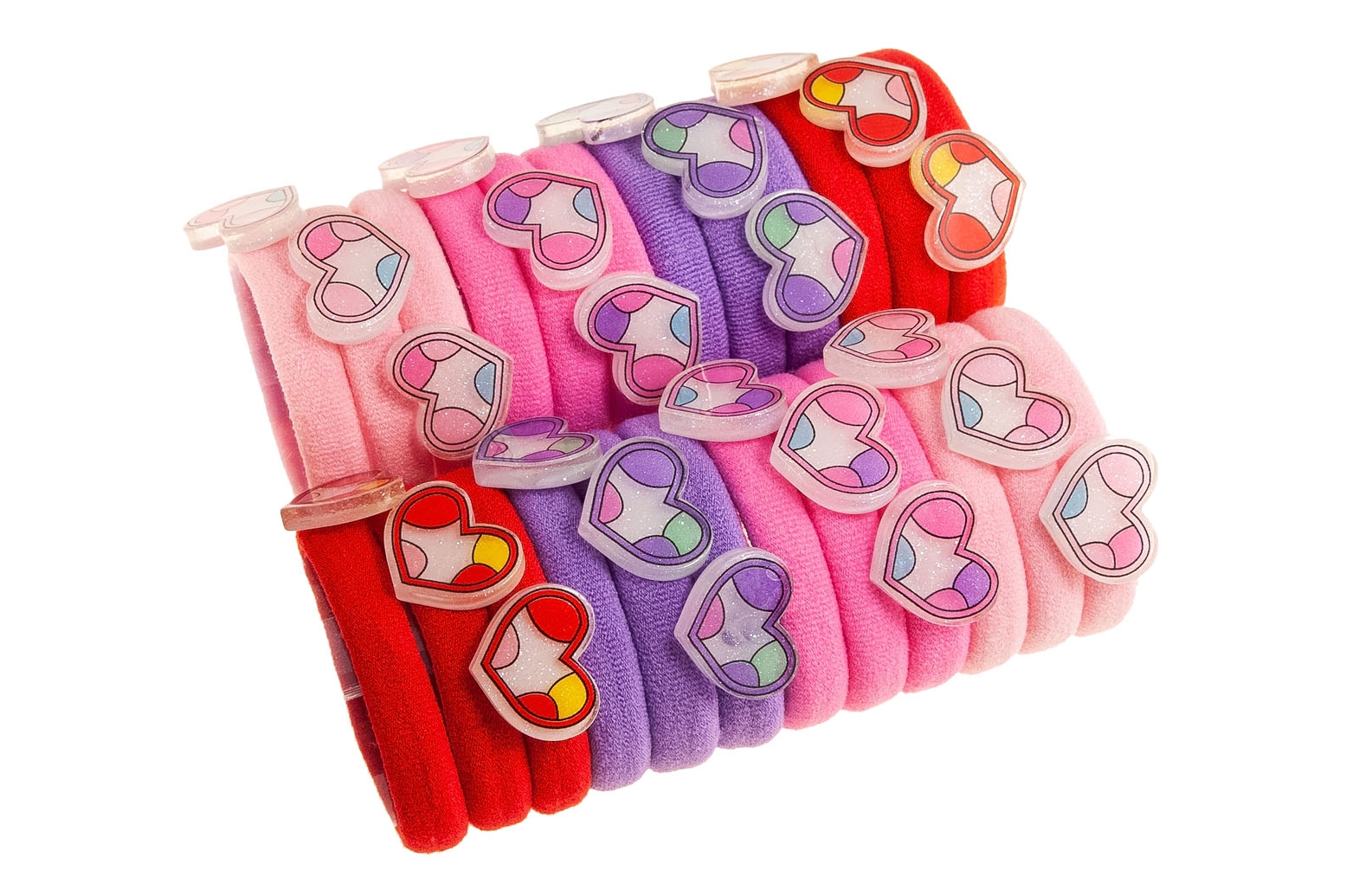 Klasyczne gumki do włosów z uroczą ozdobą w kształcie serduszka.