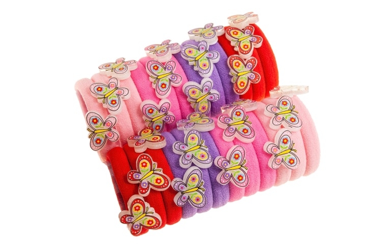 Klasyczne gumki do włosów z uroczą ozdobą w kształcie motylka.