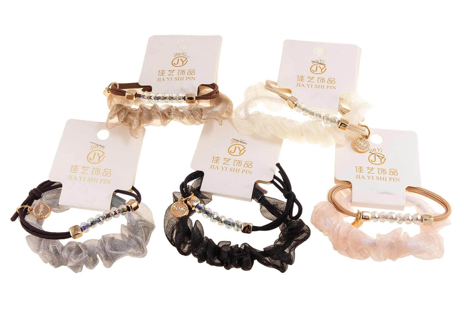 Eleganckie gumki do włosów. Gumki obszyte są materiałem i są ozdobine koralikami.