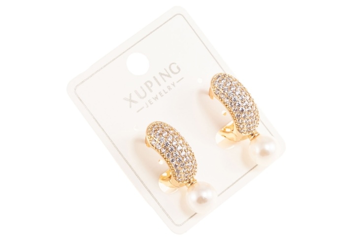 Eleganckie wiszące kolczyki. Kolczyki w kolorze złotym, ozdobione są perłami i szlifowanymi kamieniami.