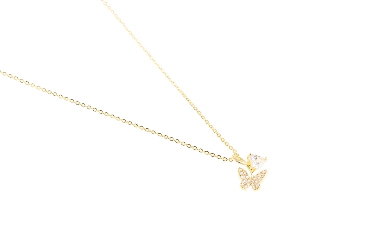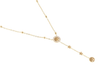 Elegancki, złoty łańcuszek z piękną przywieszką ozdobioną mieniącymi się kamieniami.Wymiary naszyjnika: