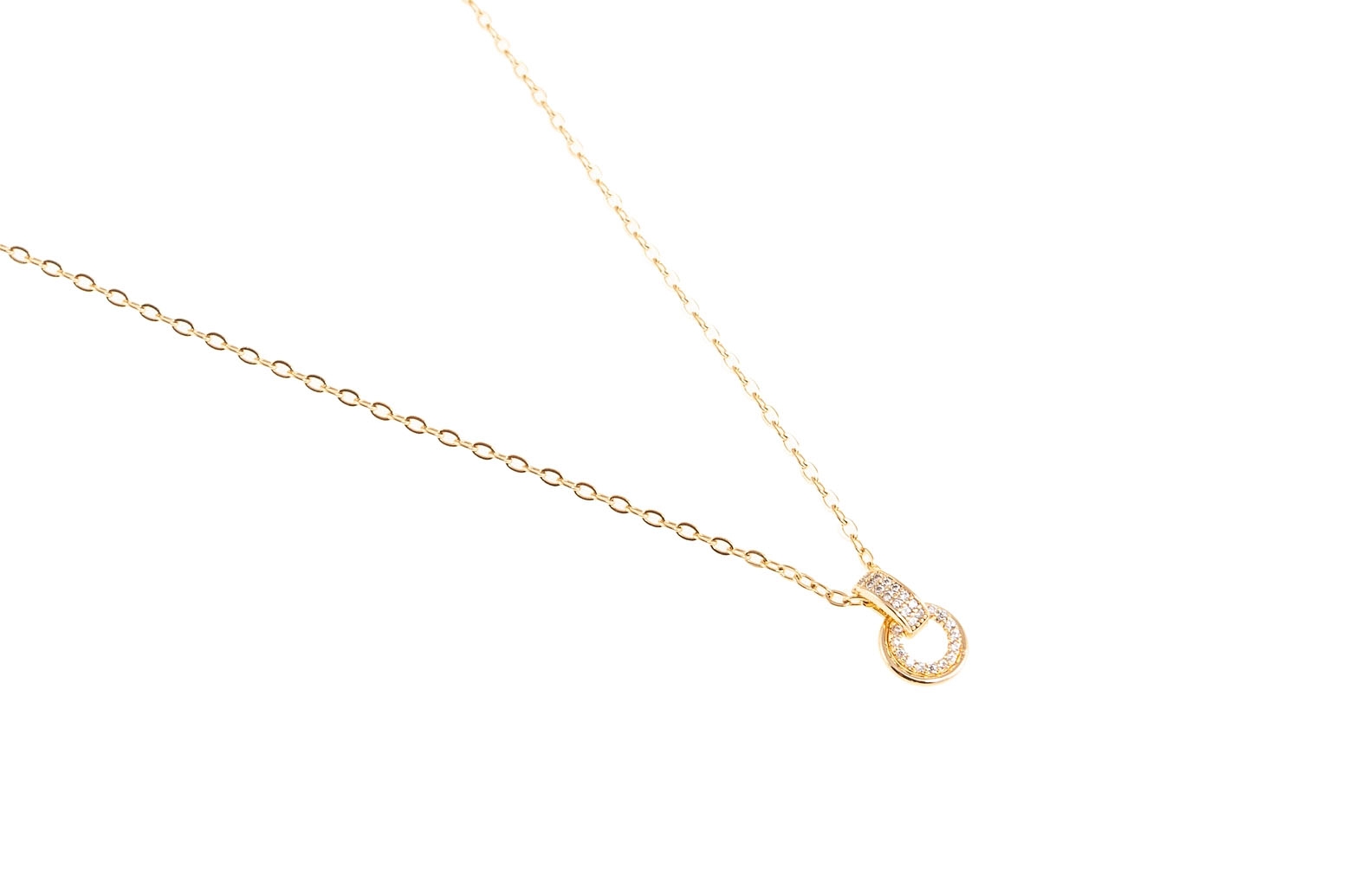 Elegancki, złoty łańcuszek z piękną przywieszką ozdobioną dżetami.Wymiary naszyjnika: