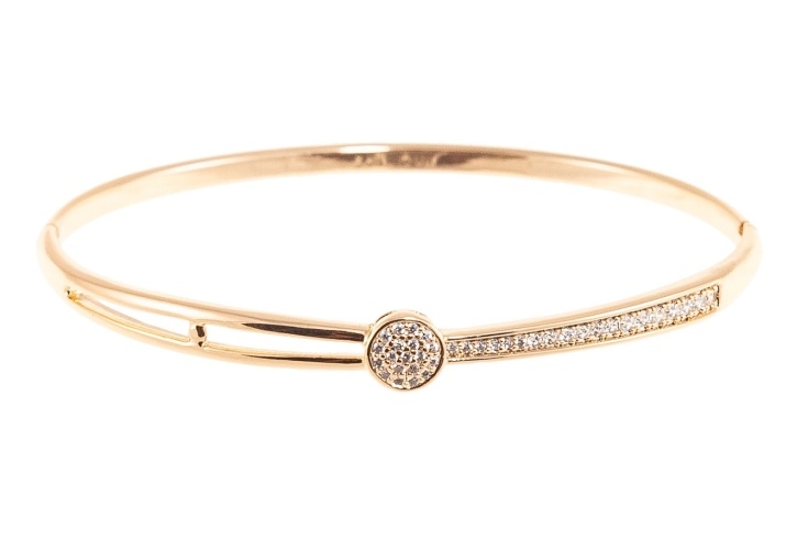 Elegancka sztywna bransoletka w kolorze złotym, ozdobiona dżetami.Wymiary bransoletki: