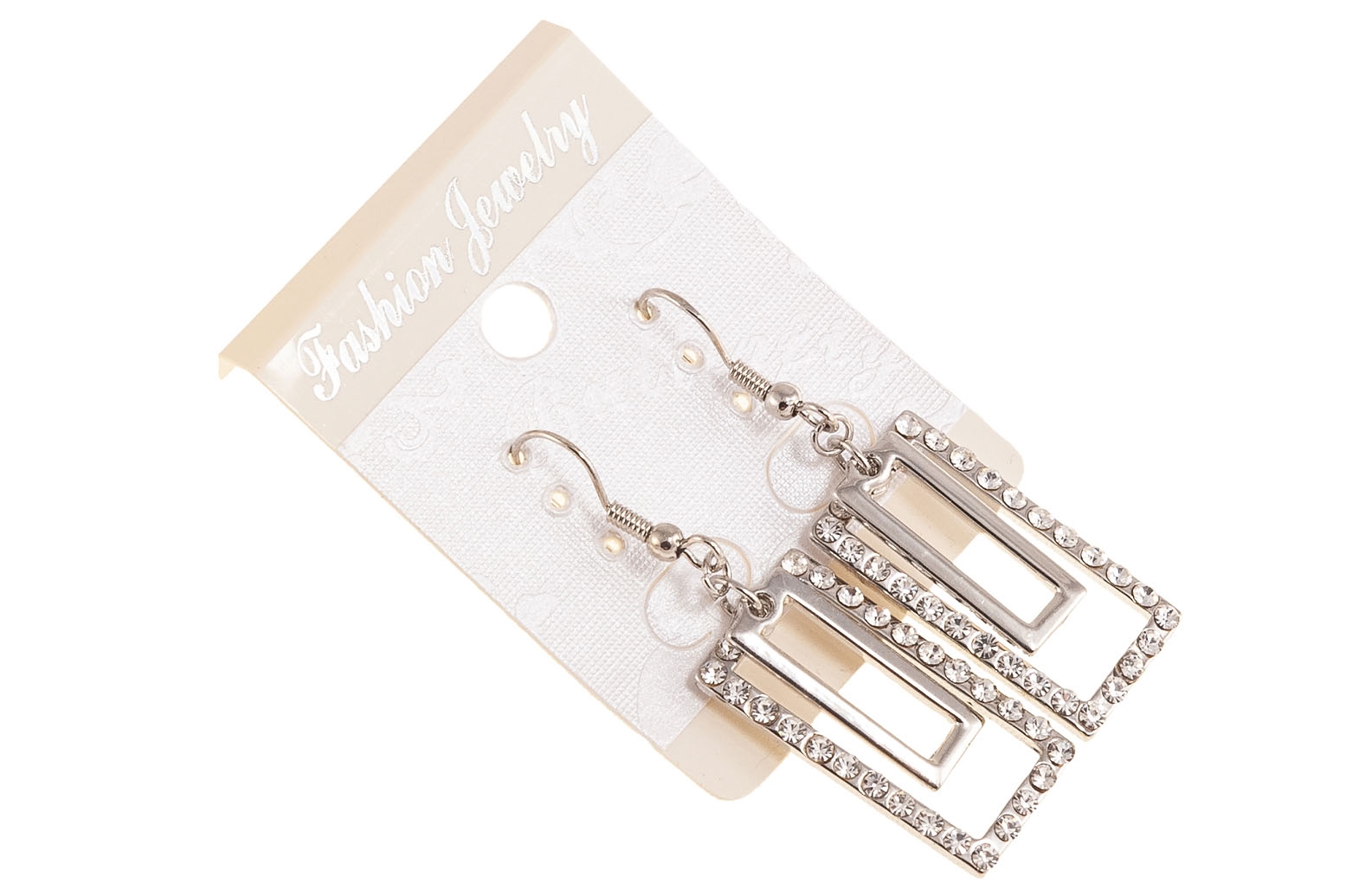 Eleganckie wiszące kolczyki w kolorze srebrnym z ozdobnymi przywieszkami.