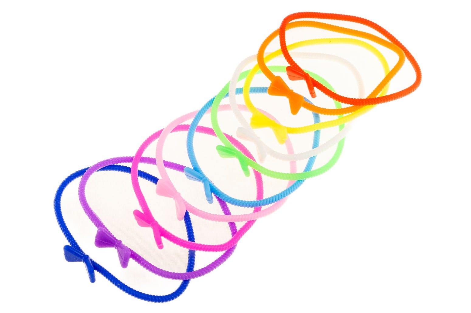 Sylikonawa bransoletka ozdobiona kokardką.Zestaw składa się z dziesięciu kolorów.