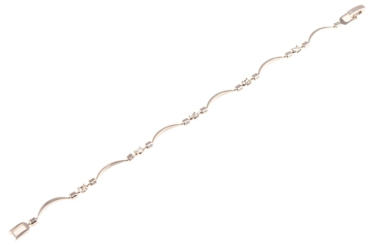Elegancka bransoletka w kolorze srebrnym, ozdobiona szlifowanymi kamieni.Bransoletka pięknie się mieni.