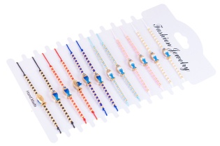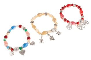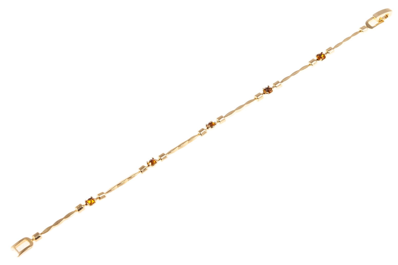 Elegancka bransoletka w kolorze złotym, ozdobiona szlifowanymi kamieni.