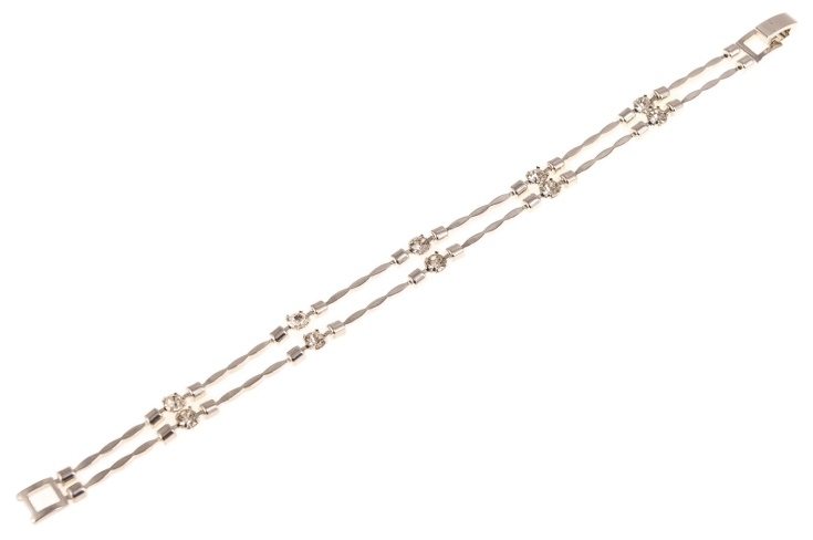 Elegancka bransoletka w kolorze srebrnym, ozdobiona szlifowanymi kamieni.Bransoletka pięknie się mieni.