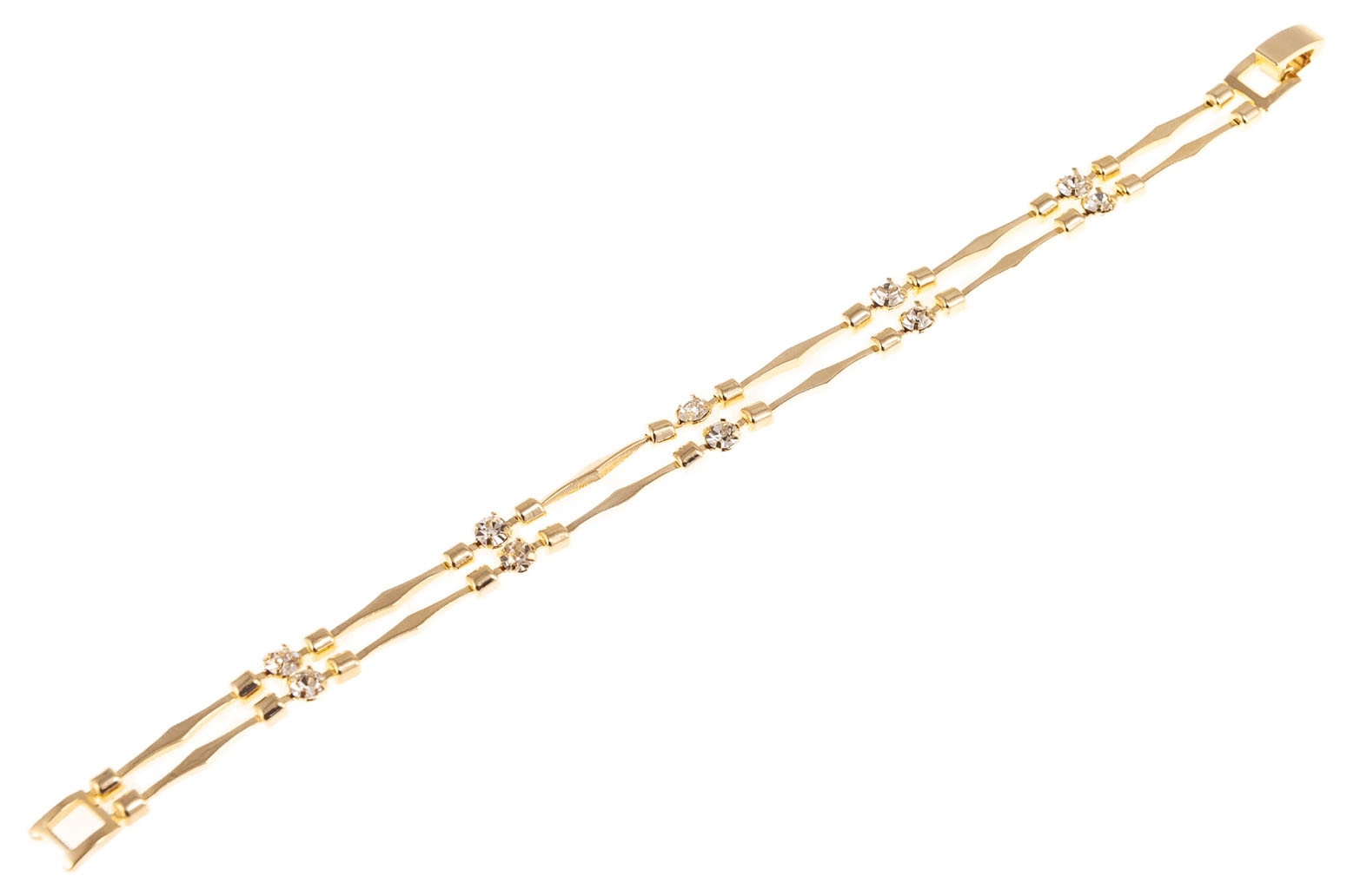 Elegancka bransoletka w kolorze złotym, ozdobiona szlifowanymi kamieni.Bransoletka pięknie się mieni.