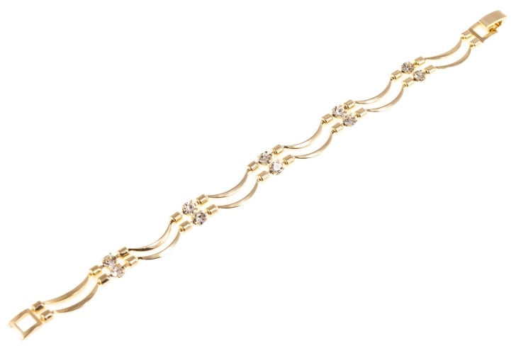 Elegancka bransoletka w kolorze złotym, ozdobiona szlifowanymi kamieni.Bransoletka pięknie się mieni.