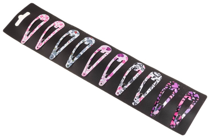 Klasyczne spinki do włosów, wykonane z metalu. Spinki są ozdobione uroczymi nadrukami.