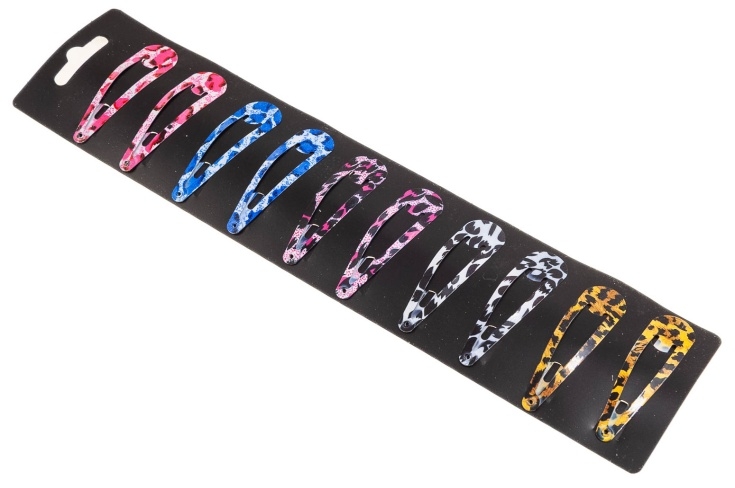 Klasyczne spinki do włosów, wykonane z metalu. Spinki są ozdobione uroczymi nadrukami.