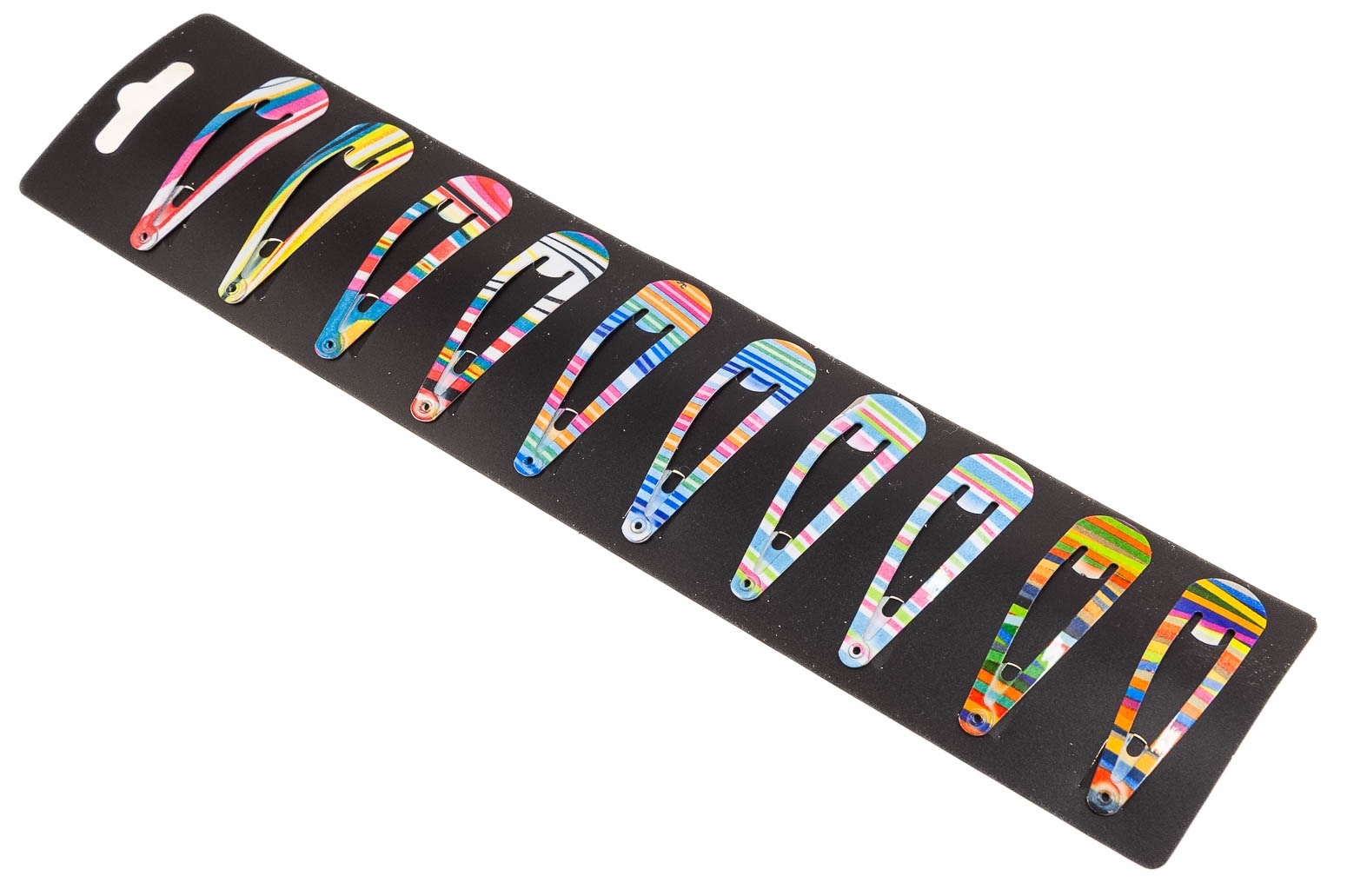 Klasyczne spinki do włosów, wykonane z metalu. Spinki są ozdobione uroczymi nadrukami.