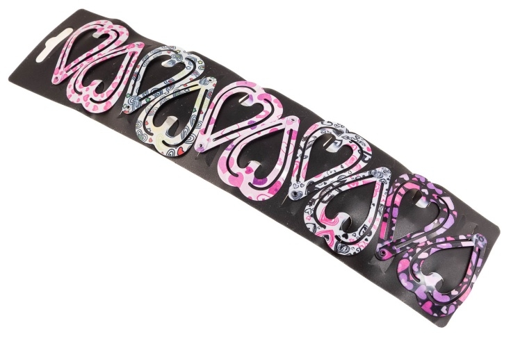 Spinki do włosów, wykonane z metalu w kształcie serduszek.