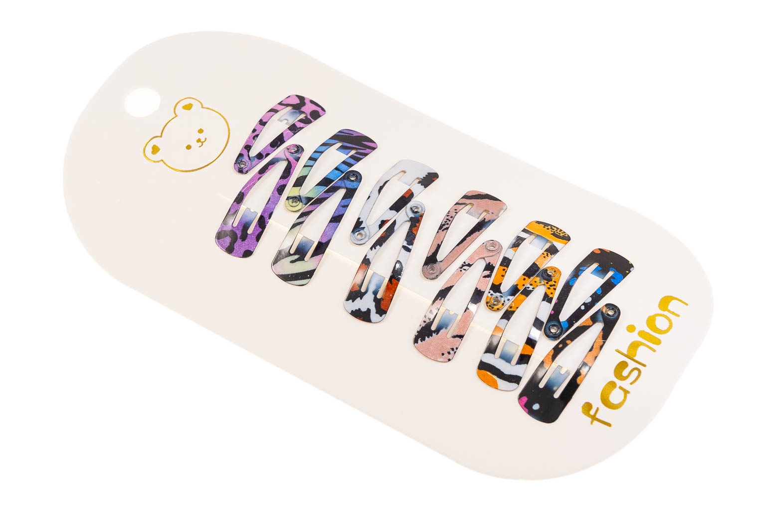 Mini spinki do włosów, wykonane z metalu. Spinki są ozdobione uroczymi nadrukami.