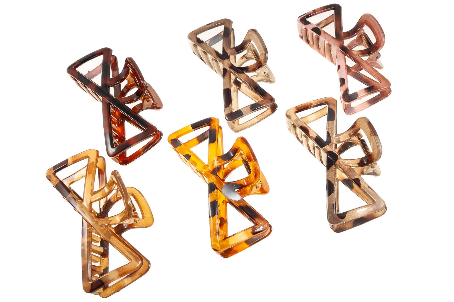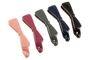 Spinki do włosów w kształcie kokardek wykonane z wytrzymałego materiału.Zestaw składa się ze spinek w różnych odcieniach koloru brązowego.