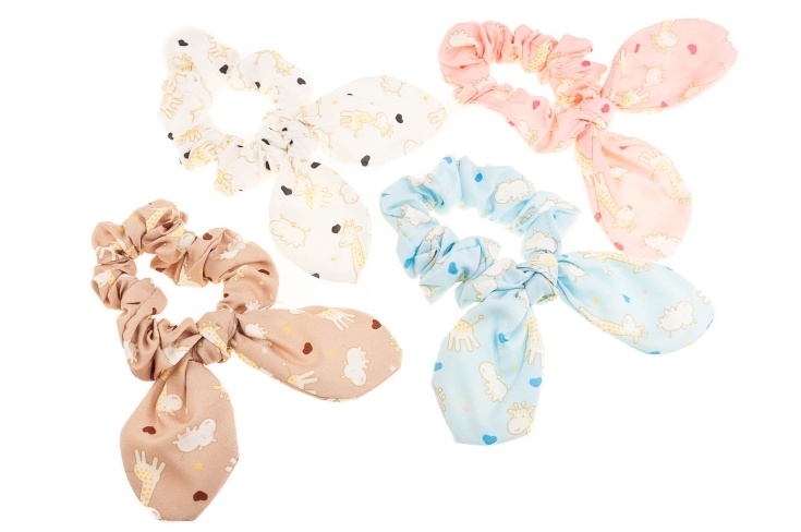Materiałowa gumka do włosów z uszami.