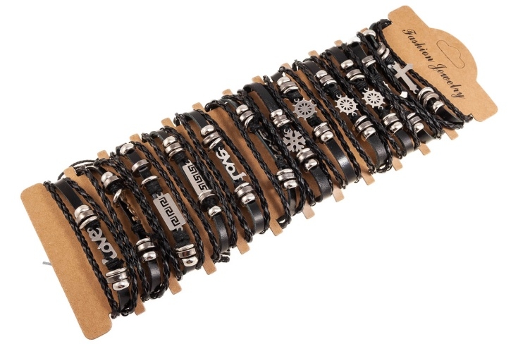Męskie bransoletki.Bransoletka składa się z rzemyka i metalowej ozdoby.
