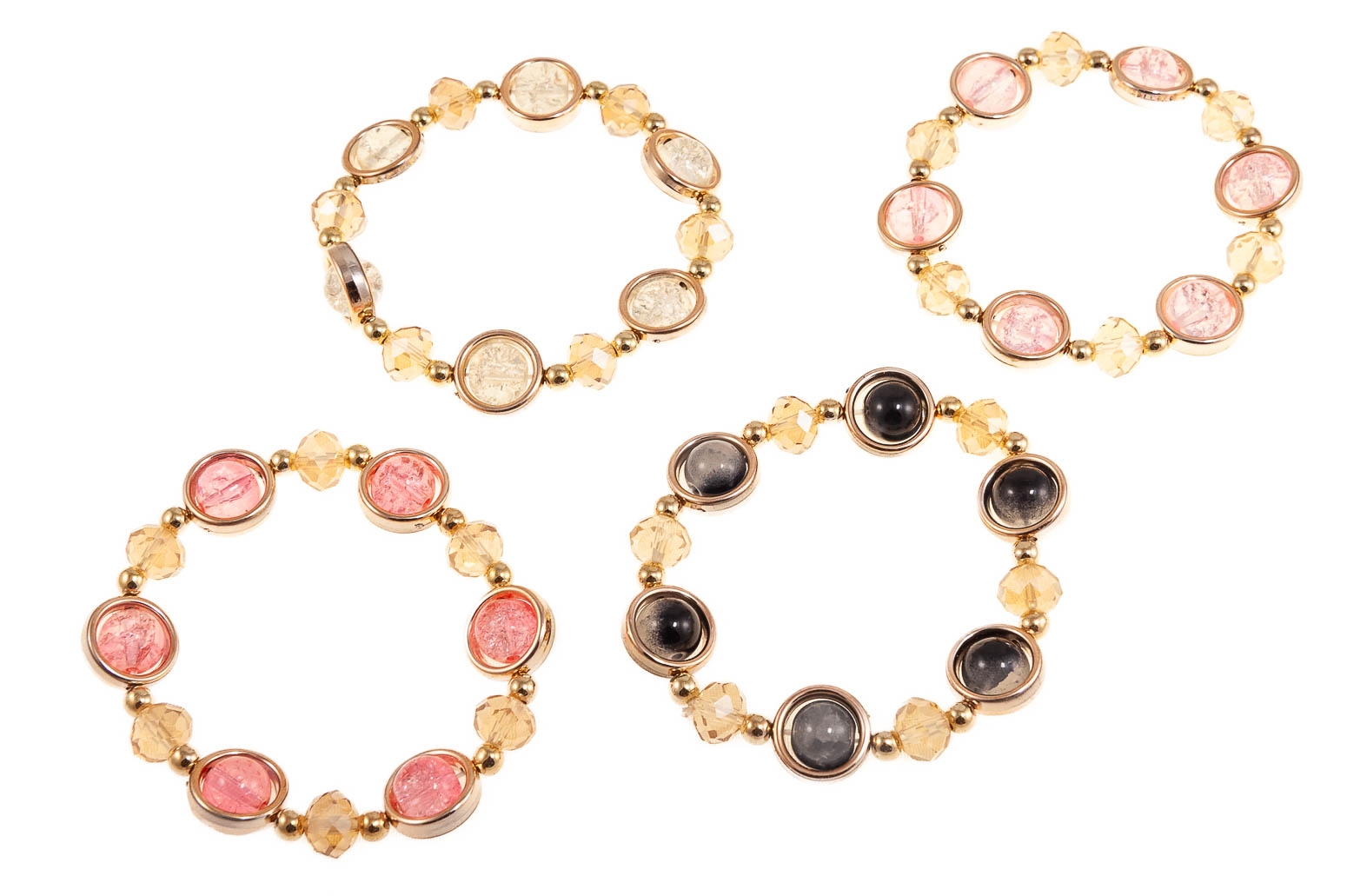 Elegancka bransoletka wykonana z koralików i okręgów.