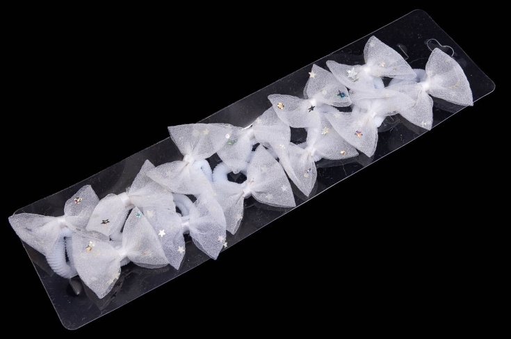 Klasyczne gumki do włosów z uroczą ozdobą w kształcie kokardy.Zestaw składa się z ozdób w białym kolorze.
