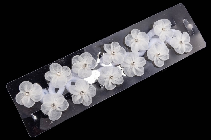 Klasyczne gumki do włosów z uroczą ozdobą w kształcie kwiatka.