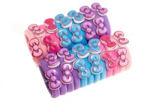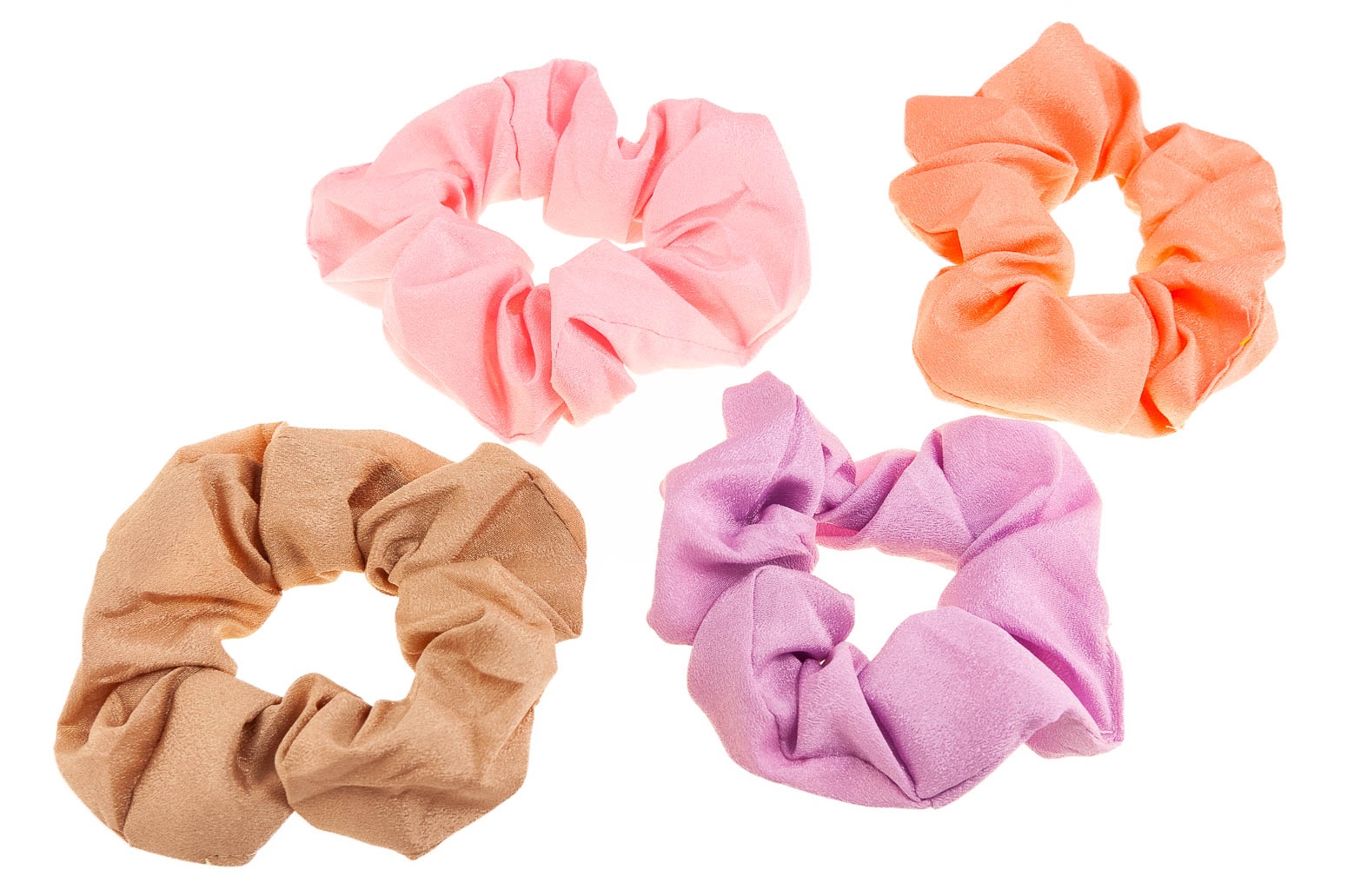 Materiałowa gumka do włosów.Zestaw składa się z czterech kolorów: fioletowego, brązowego, brzoskwiniowego i różowego.