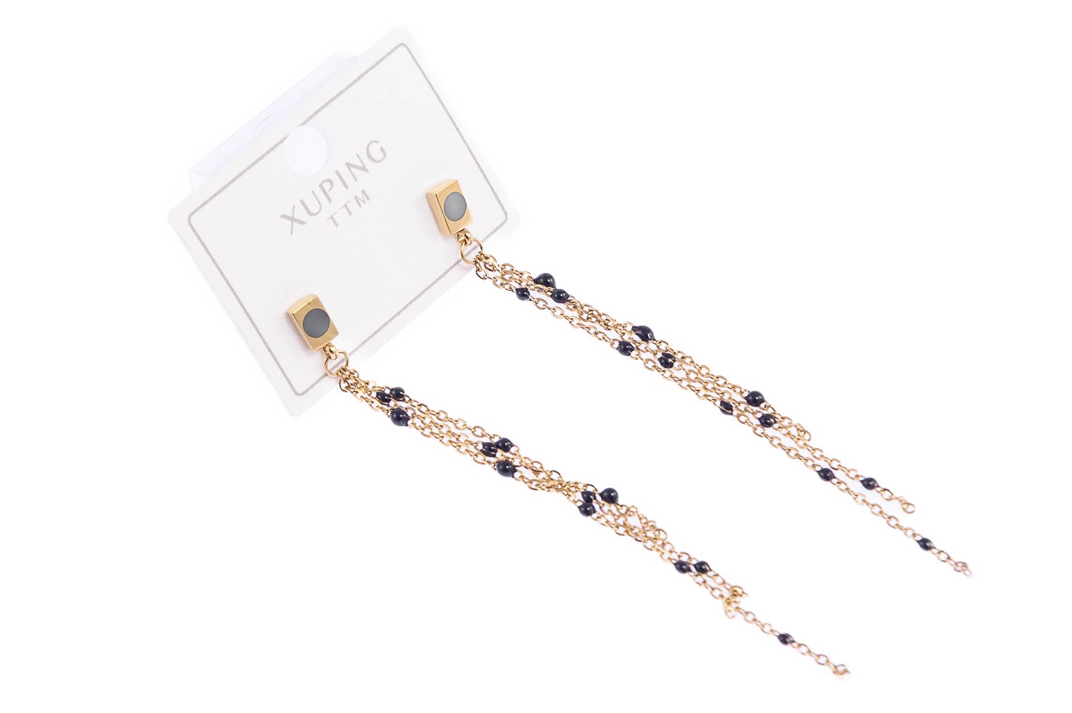 Eleganckie, wiszące kolczyki, ozdobine czarnymi elementami. Kolczyki w kolorze złotym.