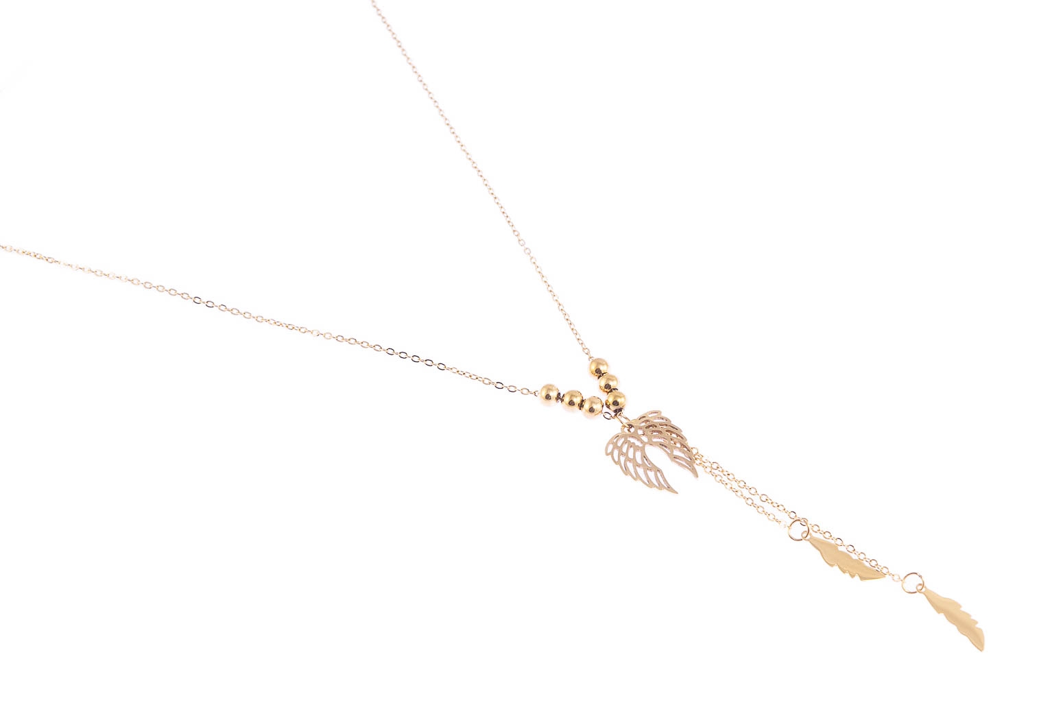 Elegancki łańcuszek z uroczymi przywieszkami w kształcie skrzydełek. Naszyjnik jest w kolorze złotym.Wymiary naszyjnika: