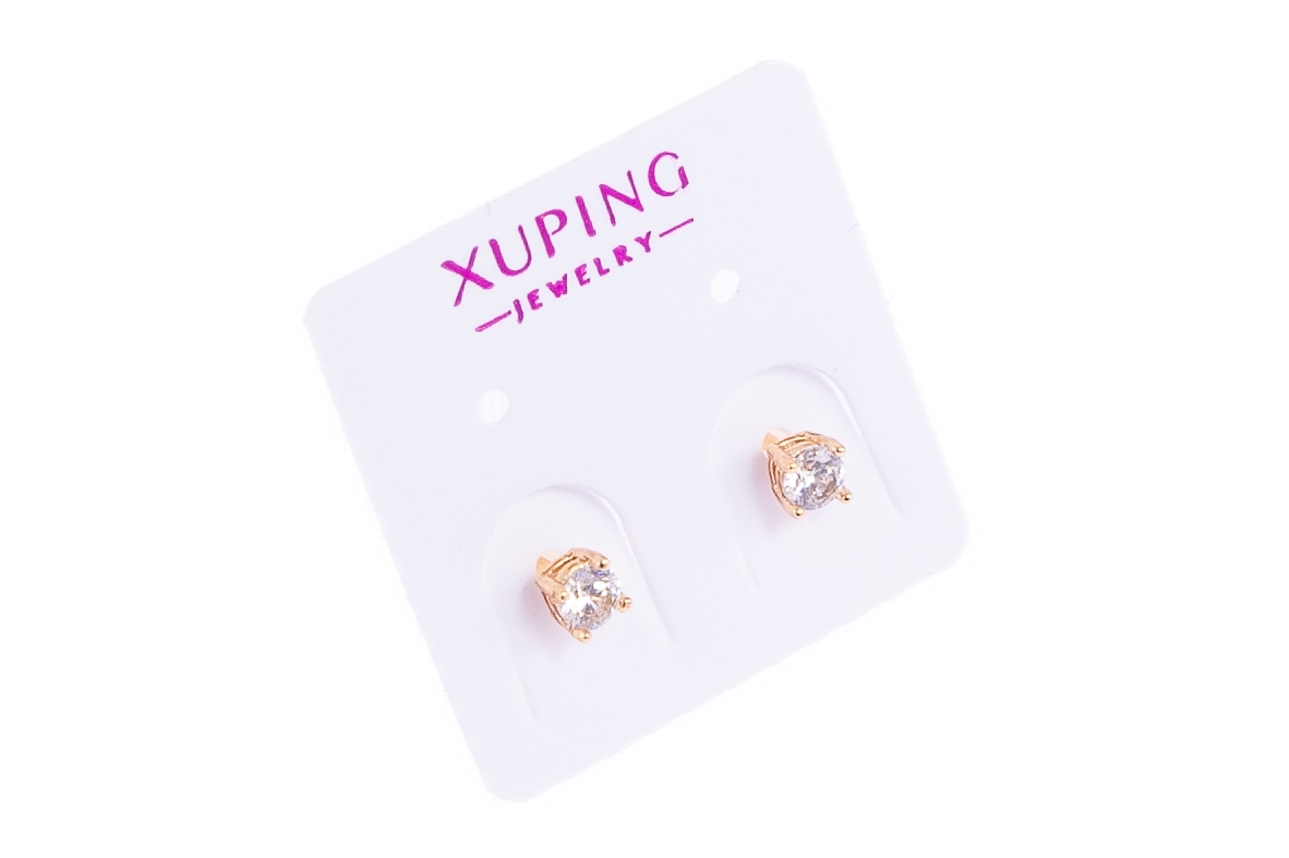 Eleganckie kolczyki w złotym kolorze, ozdobione pięknie mieniącymi się kamieniami.