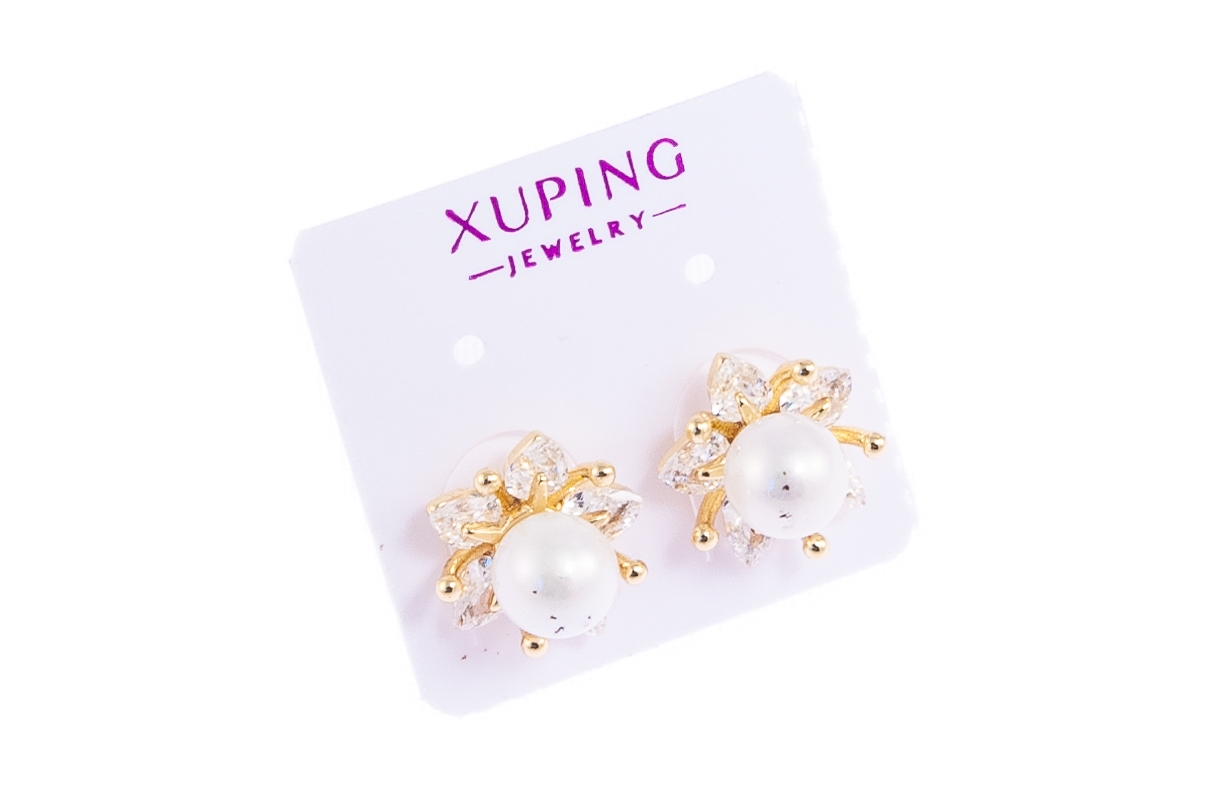 Eleganckie kolczyki w kształcie kwiatków. Kolczyki w złotym kolorze, ozdobione perełkami i dżetami.