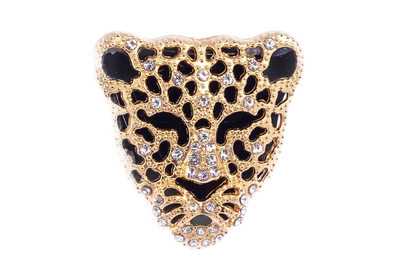 Elegancka ozdoba maskująca guzik mankietowy w kształcie pantery. Ozdoba w kolorze złotym, ozdobina szlifowanymi kamieiami.Ozdoba doda szyku każdej stylizacji.