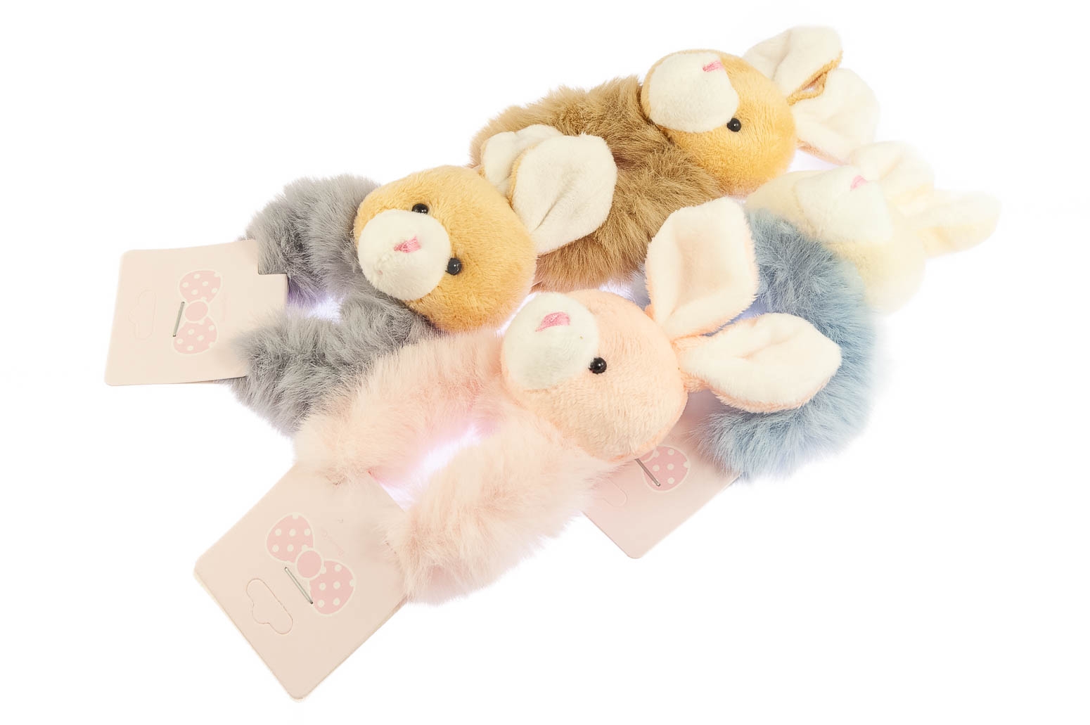Urocze gumki w kształcie królików.Zestaw składa się z czterech kolorów: szary, beżowy, błękitny i różowy.