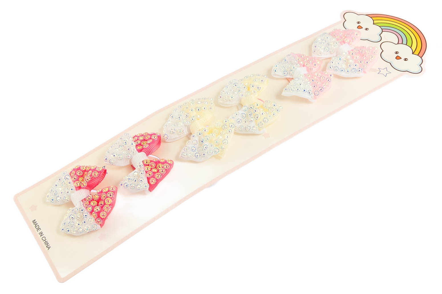 Klasyczne gumki do włosów z uroczą ozdobą w kształcie kokardki.Zestaw składa się z trzech kolorów: beżowy, jasny i ciemny różowy.