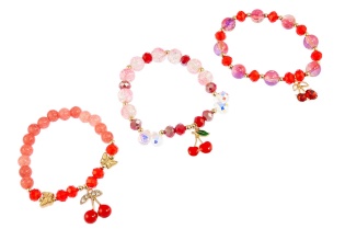 Elegancka bransoletka wykonana ze szlifowanych koralików i przywieszki w kształcie motylaZestaw składa się z czterech kolorów: beżowy, niebieski, brązowy i czerwony.