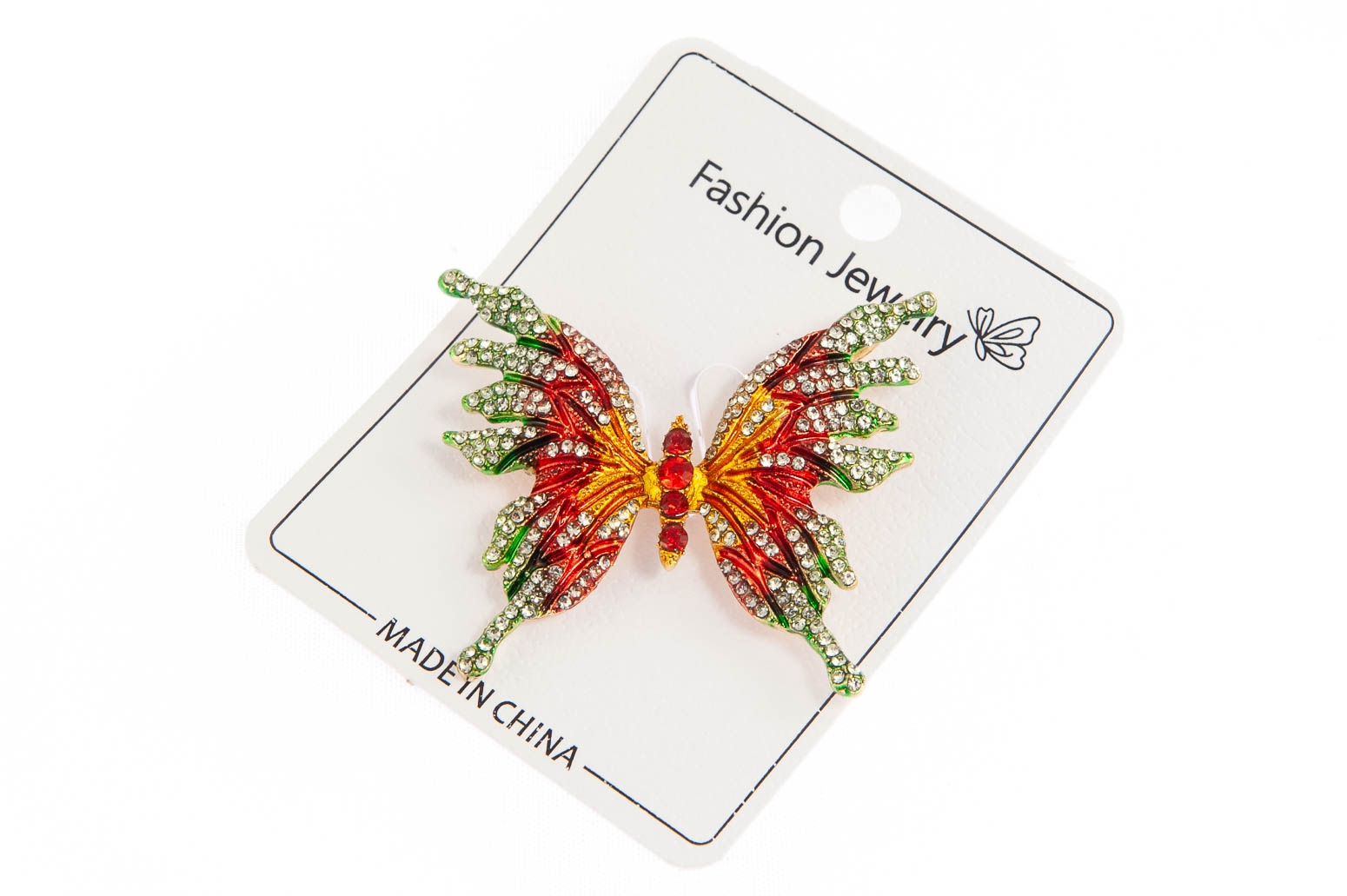 Elegancka broszka w kształcie motylka. Przywieszka w wielo kolorowa, ozdobiona szlifowanymi kamieniami.