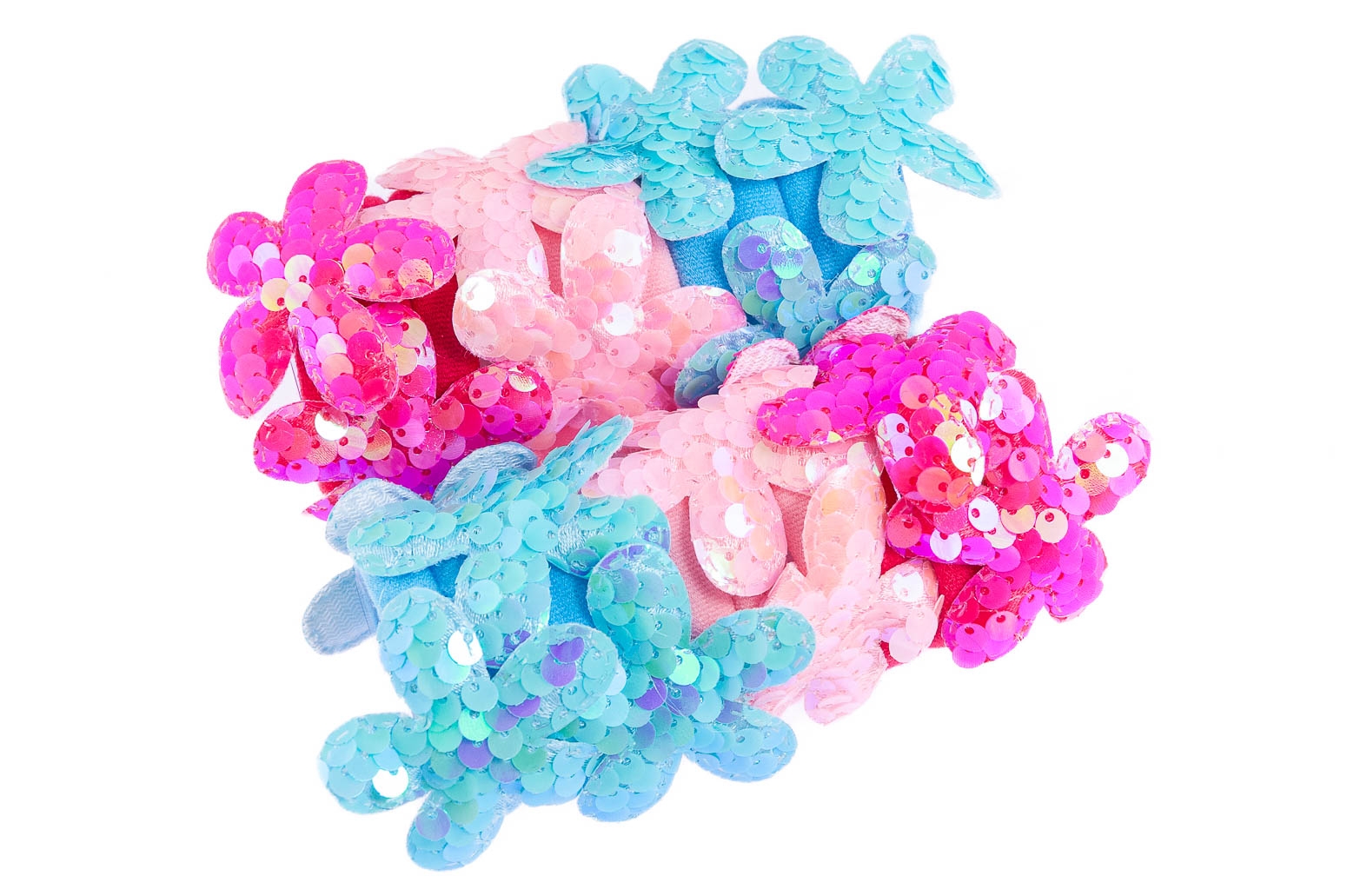 Klasyczne gumki do włosów z uroczymi, cekinowymi kwiatkami.