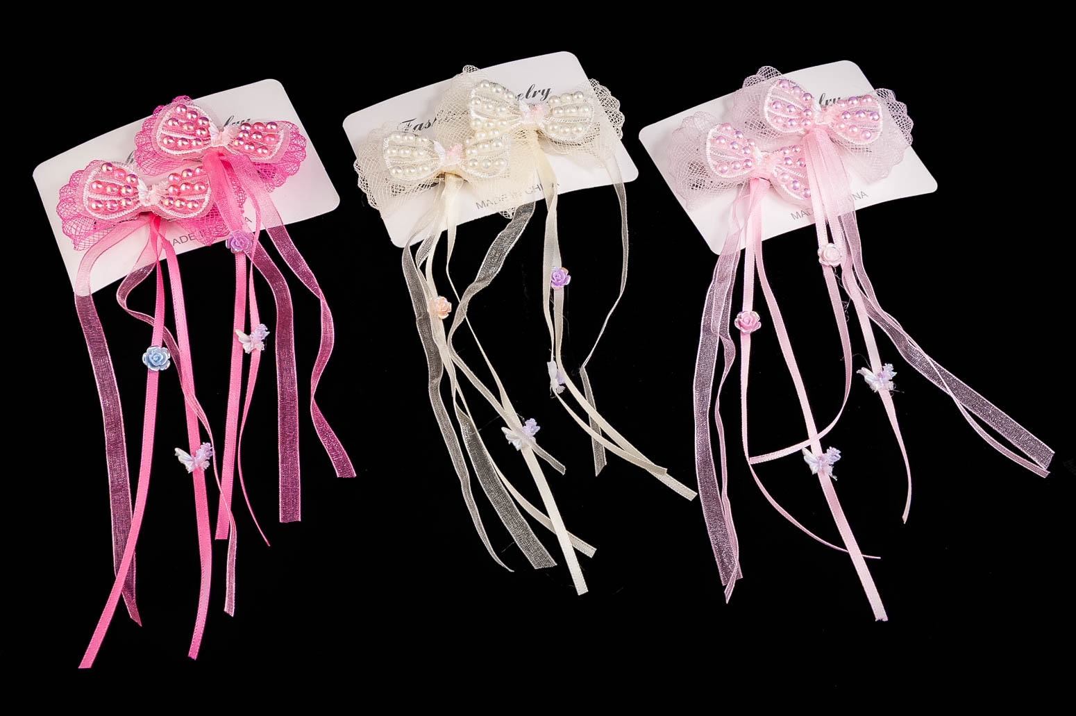 Klasyczne spinki z elegancką kokardą i uroczymi frędzelkami,.