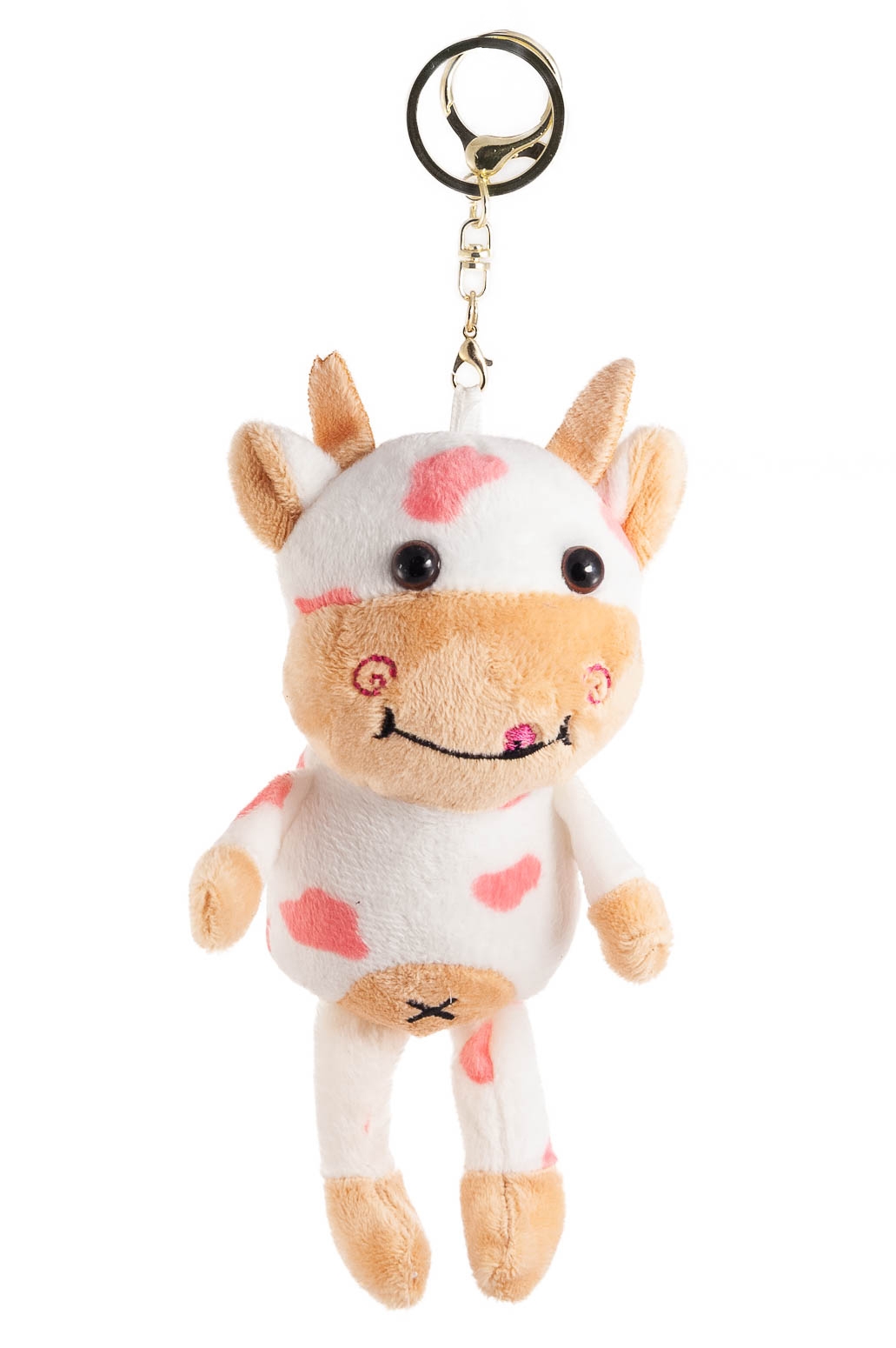 Uroczy brelok w kształcie krówki w kolorze różowym.
