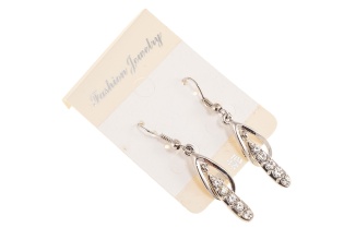 Eleganckie wiszące kolczyki w kolorze srebrnym z ozdobnymi przywieszkami.