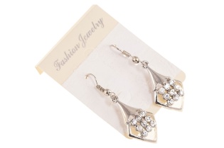 Eleganckie wiszące kolczyki w kolorze srebrnym z ozdobnymi przywieszkami.