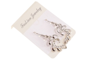 Eleganckie wiszące kolczyki w kolorze srebrnym z ozdobnymi przywieszkami.