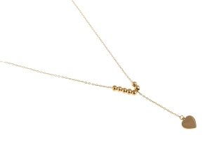 Elegancki łańcuszek z uroczą przywieszką w kształcie serca, ozdobiony szlifowanymi kamieniami. Naszyjnik jest w kolorze złotym.Wymiary naszyjnika: