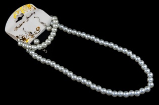 Perłowy zestaw, składający się z naszyjnika, bransoletki i kolczyków.Zestaw jest w kolorze białym.