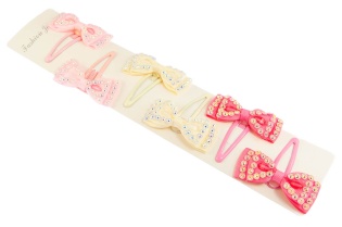 Klasyczne spinki do włosów z uroczą ozdobą w kształcie kokardki.Zestaw składa się z trzech kolorów: beżowy, jasny i ciemny różowy.